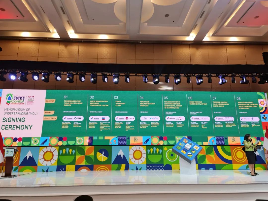 印度尼西亞能礦部新能源總局(EBKTE)于7月12日舉辦了第11屆EBKTE展覽會。展覽會開幕儀式上,印度尼西亞石油公司下屬地熱分公司PT Pertamina Geohtermal Energy Tbk. (PGE)與數(shù)家重要的潛在伙伴簽署了《諒解備忘錄》。