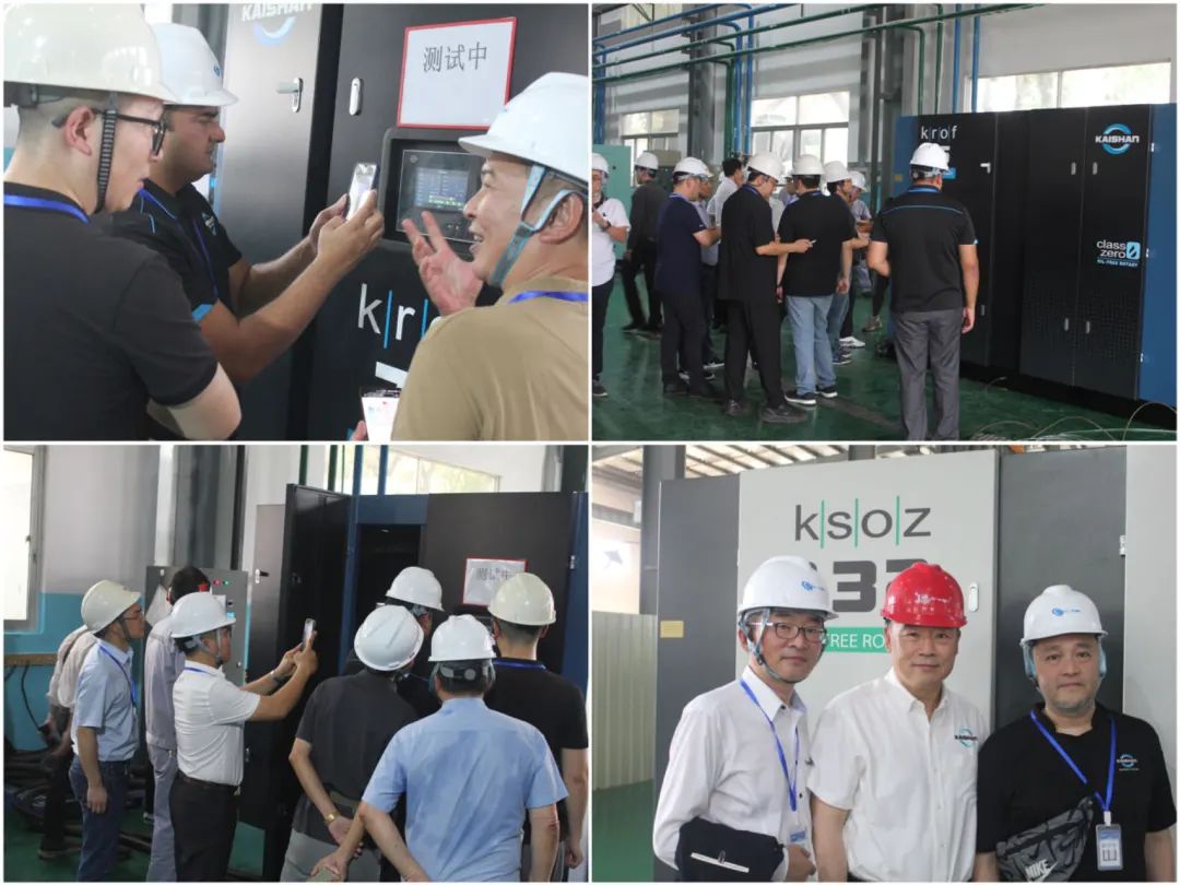 經(jīng)銷商實(shí)地察看了兩臺(tái)分別是75kW和132kW的無(wú)油螺桿空壓機(jī),所有參加會(huì)議的專業(yè)人士都對(duì)機(jī)組運(yùn)行時(shí)超低的噪聲贊不絕口,贊揚(yáng)機(jī)組精湛的制作工藝讓機(jī)器看起來(lái)就像“工藝品”,馬來(lái)西亞經(jīng)銷商告訴同行,他銷售的160kW無(wú)油機(jī)業(yè)主十分滿意,無(wú)油機(jī)打開(kāi)市場(chǎng)是指日可待的。